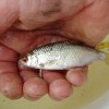 Das Keschern erbrachte kaum einmal einen Fisch, für Fischlarven war die Jahreszeit schon zu fortgeschritten. Aber mit den Senken war Erfolg beschieden: Kaulbarsche (Gymnocephalus cernuus), Moderlieschen (Leucaspius delineatus), Flussbarsche (Perca fluviatilis), Rotaugen (Rutilus rutilus), Brassen (Abramis brama) und Dreistachlige Stichlinge (Gasterosteus sp.). All diese Fische maßen 3 (Stichlinge) bis maximal 10 cm (Rotaugen, Brassen), was ein Hinweis darauf ist, dass hier Fischbrut aufkommt. Vor allem junge Kaulbarsche und Moderlieschen lagen überraschend häufig auf den gehievten Netzen. Moderlieschen sind nicht leicht nachweisbar, werden sie doch häufig mit Jungfischen anderer Cypriniden verwechselt. Matthias Hein von Ecosurv begab sich mit Wathose ins Wasser und fing mittels seines Elektrofischereigerätes ebenfalls die oben genannten Arten, zusätzlich aber noch ein paar Besonderheiten, zu solchen gehört der Steinbeißer (Cobitis taenia). Es ließen sich über 20 Exemplare mit einem Totallängen-Spektrum von 4 bis 8 cm fangen. In den 80er Jahren galt der Steinbeißer noch als Anzeiger der Gewässergüte II, davon ist man mittlerweile abgekommen, kommt diese Art doch häufig in Gewässern mit etwas schlechterer Gewässergüte vor. Und in der Roten Liste für Deutschland von 1998 galt der Steinbeißer noch als „stark gefährdet“, nunmehr als „ungefährdet“ aufgrund des verbesserten Kenntnisstandes über die Vorkommen dieser Art. In Niedersachsen gilt aber noch der Status „gefährdet“. Sie besitzt aber nach wie vor den Status einer FFH-Art. Außerdem geriet noch ein Zander (Sander lucioperca) von 11 cm Länge in den Anodenbereich des Elektrofischereigerätes. Ein größeres Exemplar wurde noch von einem Angler (Thomas Wagner sei Dank) vorgezeigt.